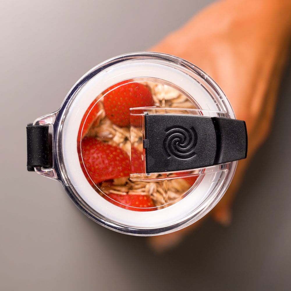 Az ivókupaknak köszönhetően a turmixgép használata még kényelmesebbé válik. A beépített szájrész lehetővé teszi, hogy azonnal, közvetlenül a készülékből igyunk, a pattintható zárás pedig szoros tömítést biztosít, így nem kell attól tartani, hogy kiömlik az ital a táskában.